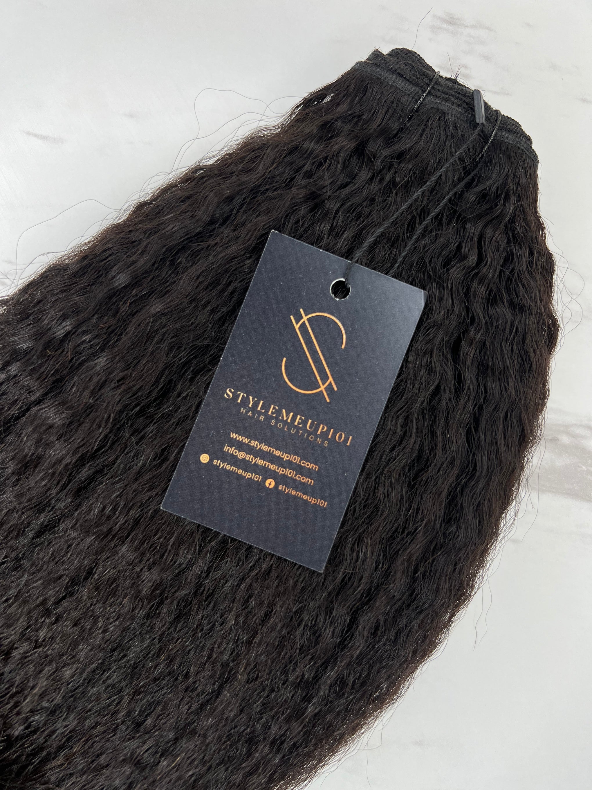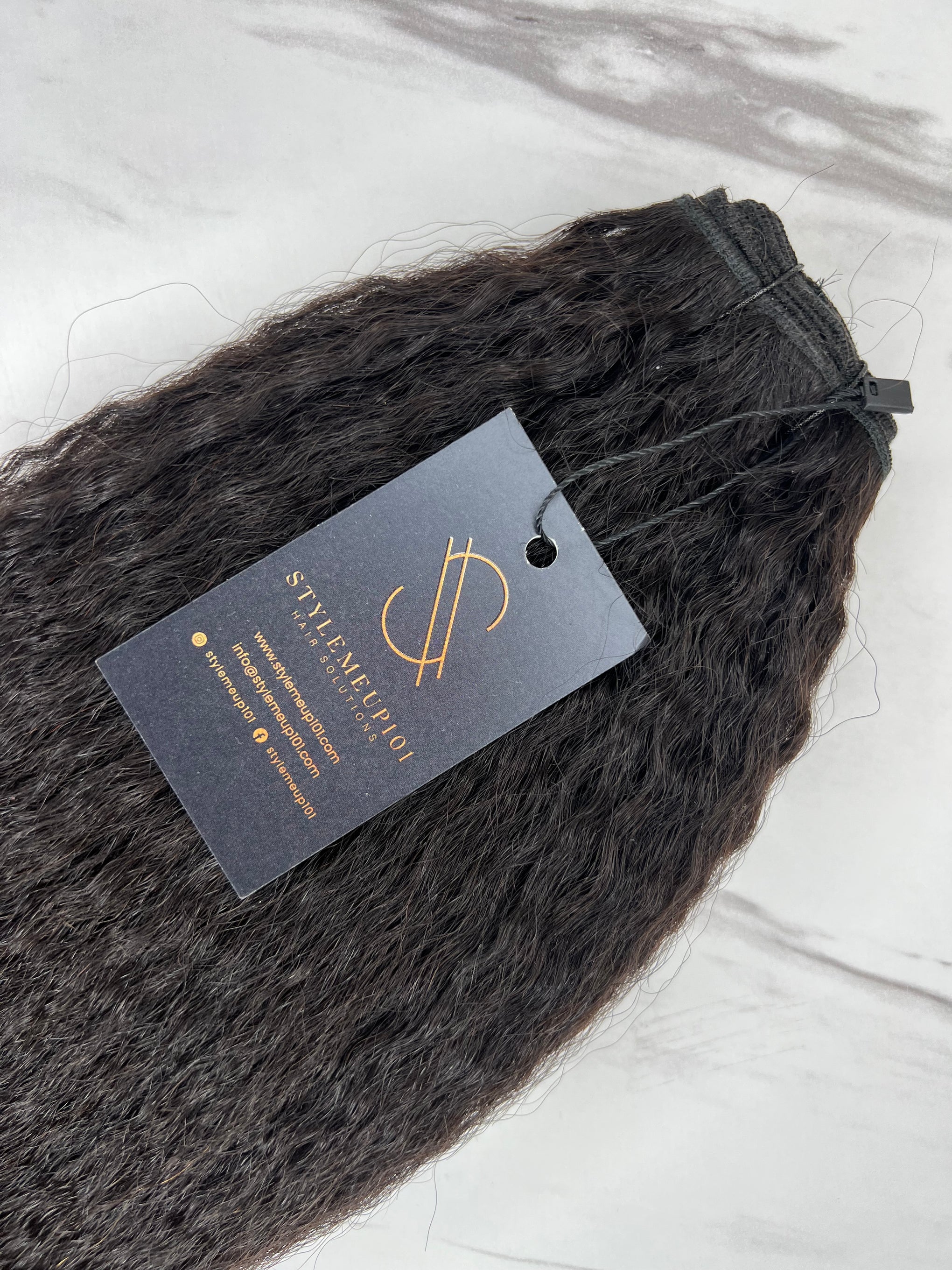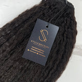 Achieve the perfect balance of sleekness and texture with Luxe Relaxed Kinky. This curl pattern mimics hair that has been relaxed to elongate it’s curl pattern (rather than to be silky straight) or completely naturally textured hair. Whether styled straight or left natural, it seamlessly blends with 3-4c hair for a flawless finish. Perfect for the client that has 3-4c hair, this hair can be straightened super sleek, without sacrificing texture. No need to continue harming your leave out with extensions, rock this texture straight or in its natural state and it still blends with your naturally textured hair.